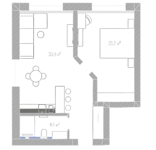Кухня студія 32,55 м²