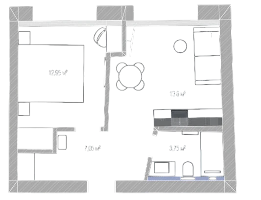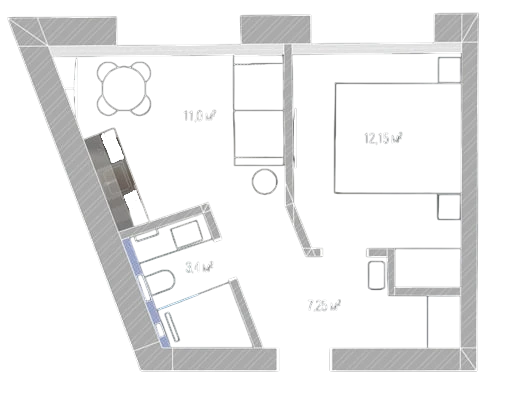 Сан-вузол 3,7 м²