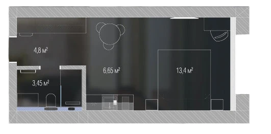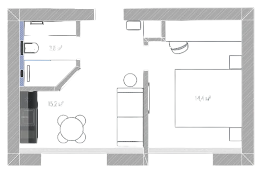 Кухня спальня 24,85 м²