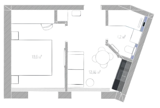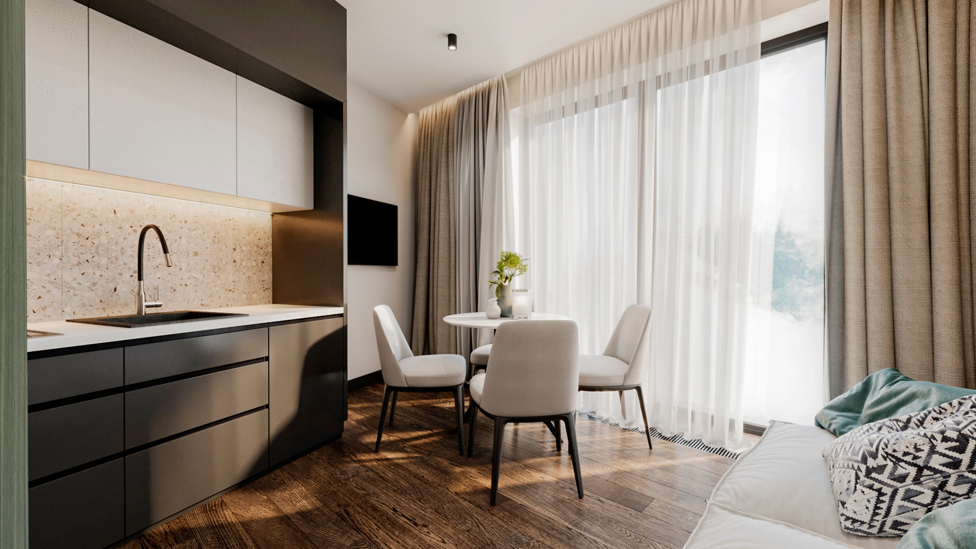 Формат із максимальною ліквідністю: невелика площа, зручне планування та швидкий період окупності. Такий тип апартаментів завжди має високий попит серед туристів, тому забезпечує інвестору надійний пасивний дохід.